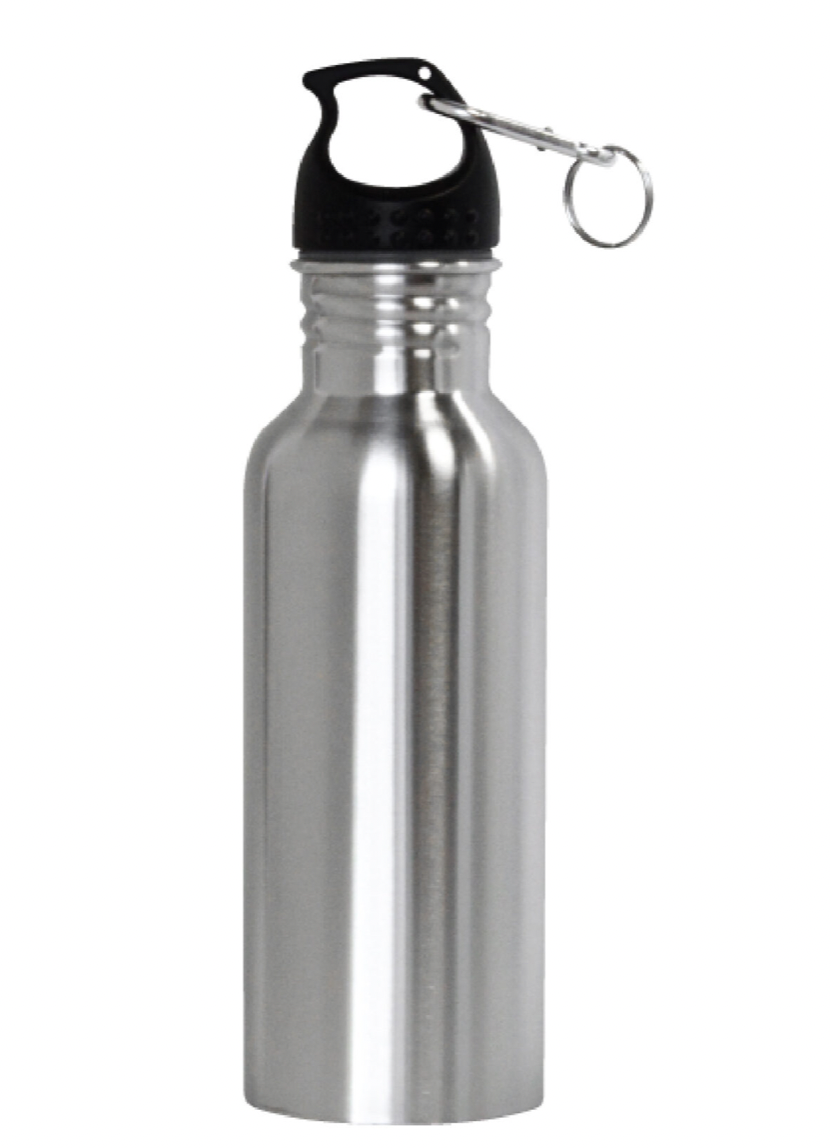 22 oz stainless steel sports bottle. 1-3/4″ wide mouth, perfect for ice cubes and easy re-filling. Leak proof lid with carabiner clip. Reusable. Odor free. BPA free and Eco-friendly.
