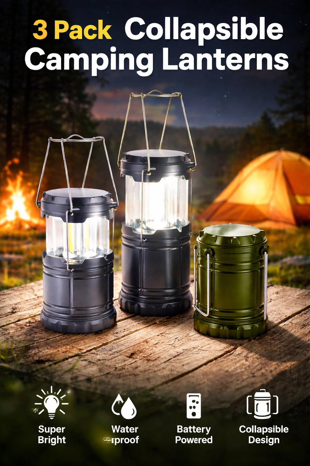 • 3-Piece Collapsible Lantern Set with COB Technology