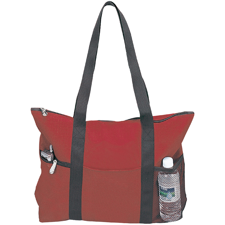 600D polyester ripstop with PVC backing. Features zippered front pocket, slip pocket, mesh pocket and metal key hook inside with 28″ strap.