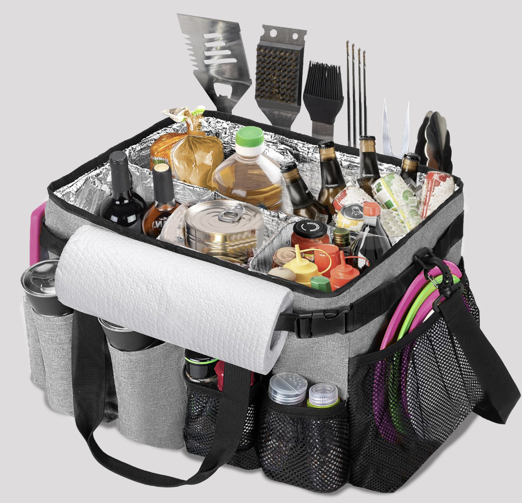 The BBQ Grill Caddy is a compact, convenient organizer for outdoor gatherings. It keeps all your essentials neatly in one place and is easy to carry and store.