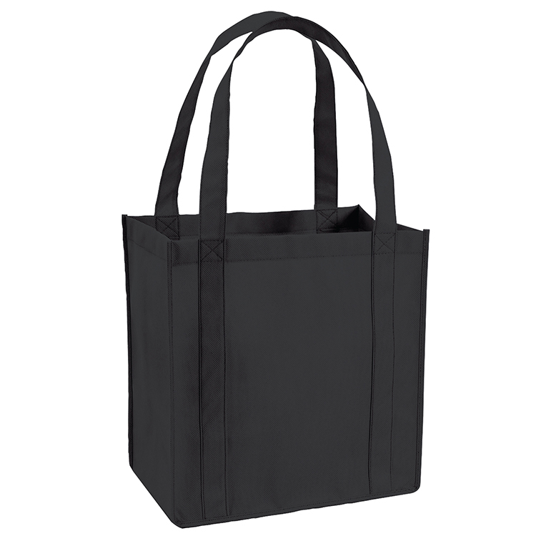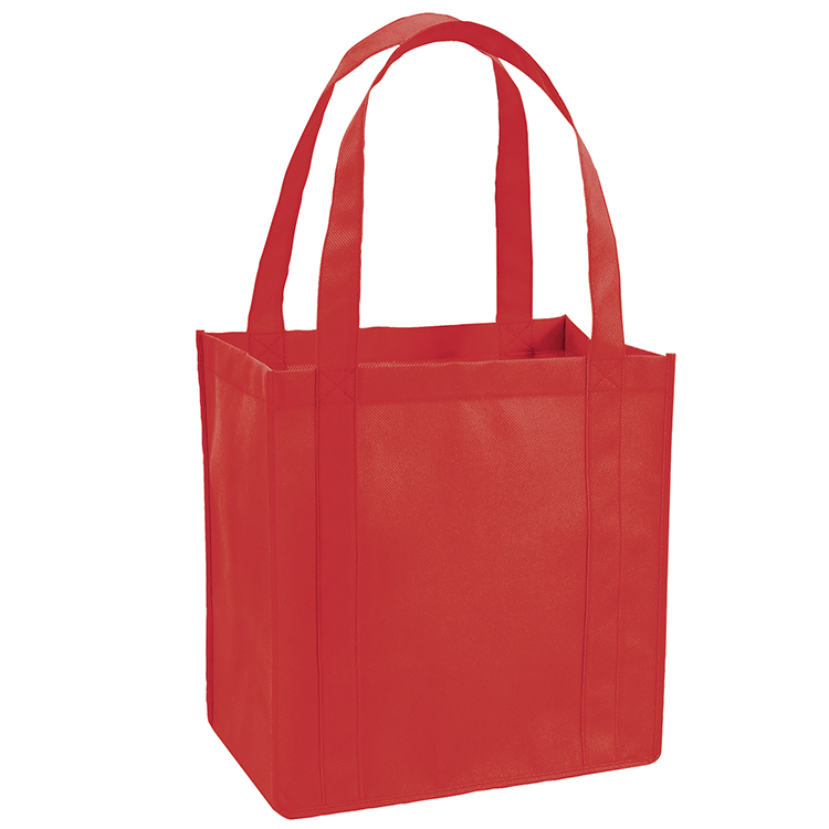 Constructed of 80 GSM non-woven polypropylene. Includes a plastic base board for more durability. 24” handles convenient for carrying it in your palm or on your shoulder. Recyclable.