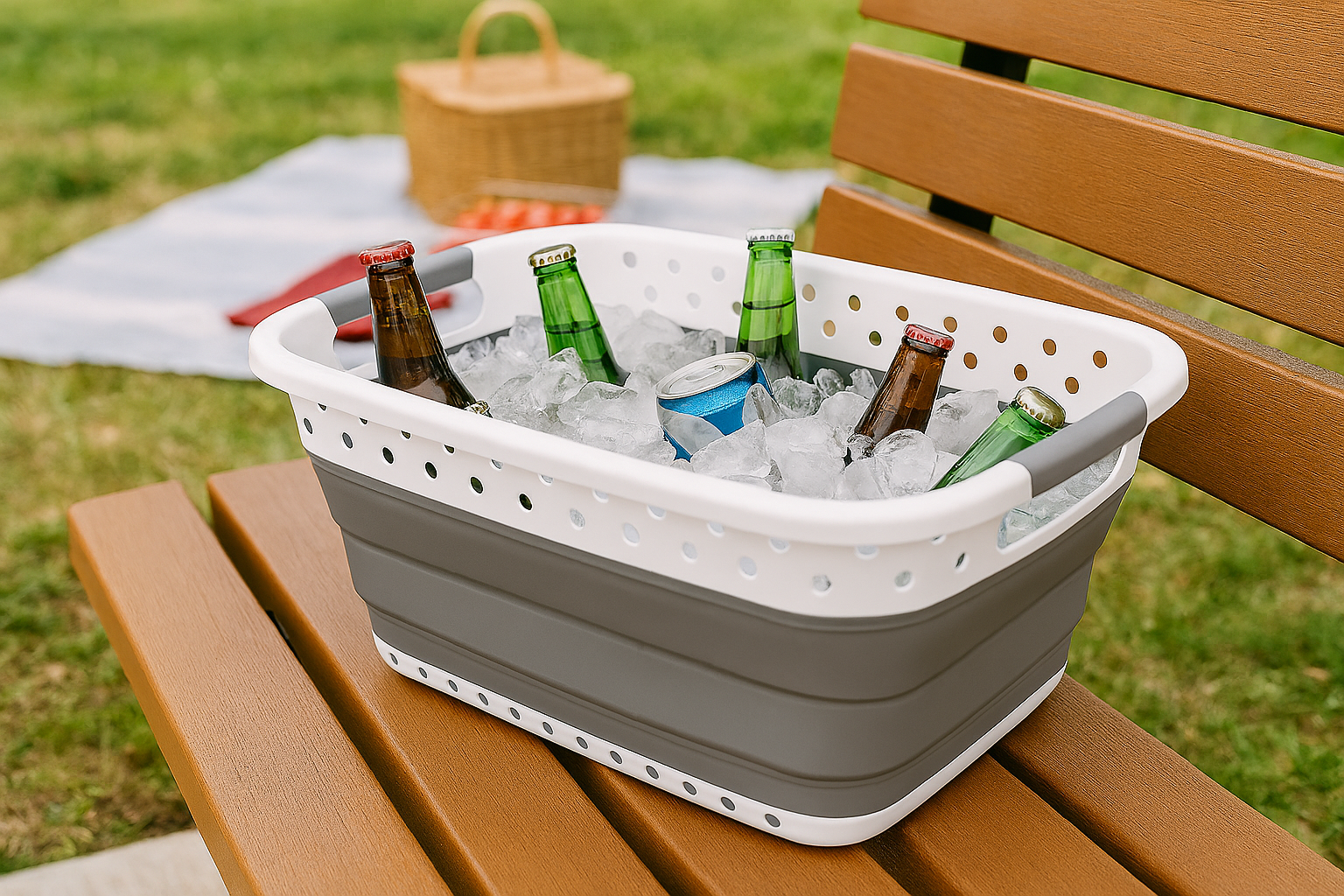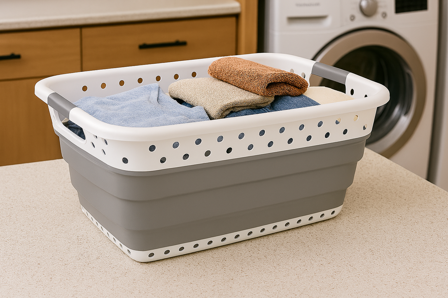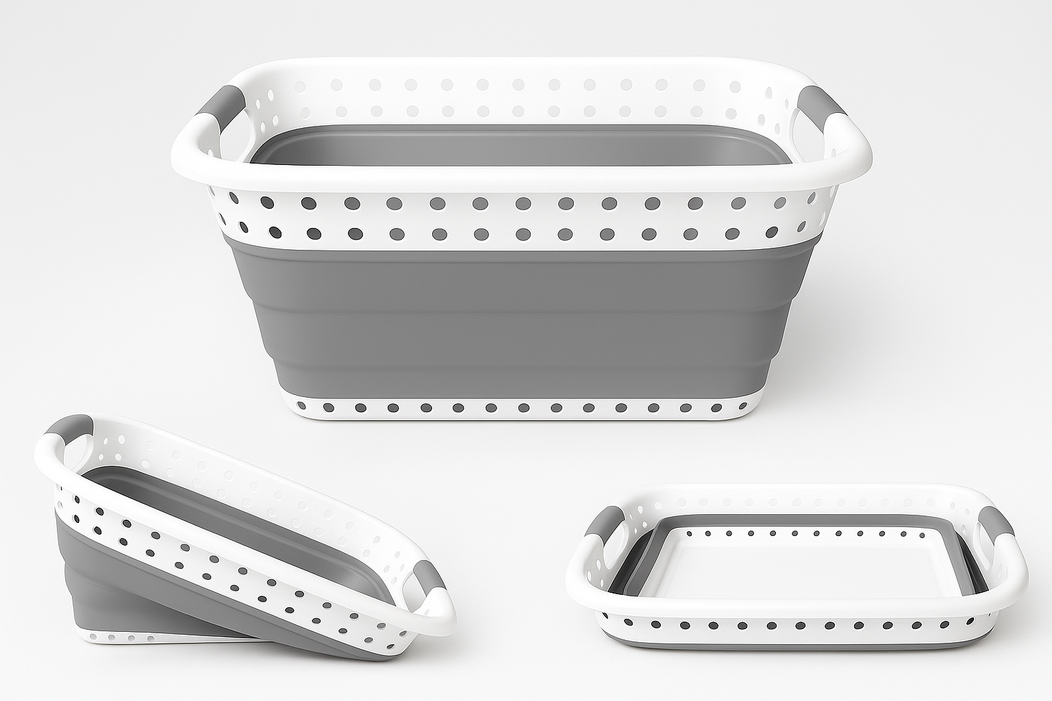 The FlexNest Collapsible Basket combines space-saving design with everyday versatility. Measuring 24″ x 18″, it expands from a slim 3″ to a roomy 10.5″ height, holding up to 37 liters. Made from durable TPR and PP materials in a sleek white and grey finish, it’s perfect for laundry, soaking, storing toys, or even chilling beverages. Just pop it open when needed and fold it flat when you’re done—ideal for modern homes that value function and style.