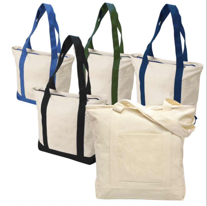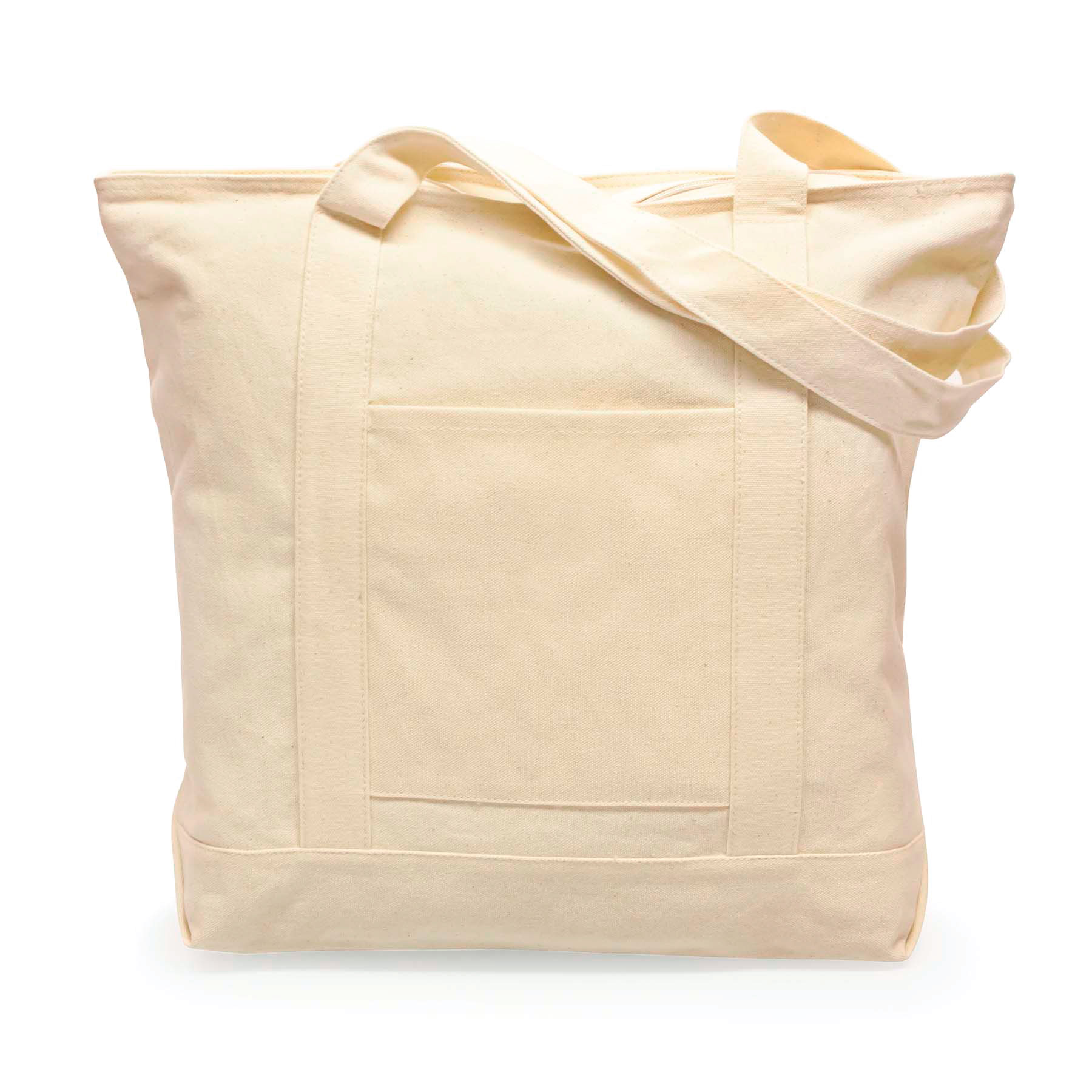 Heavy duty boat totes are made of 100%, 12 oz. cotton canvas and features an open exterior front pocket and full gusset zipper top. Comes with 26″ straps.