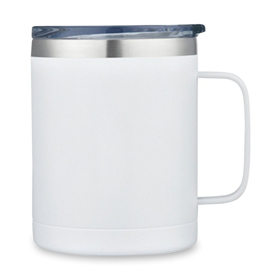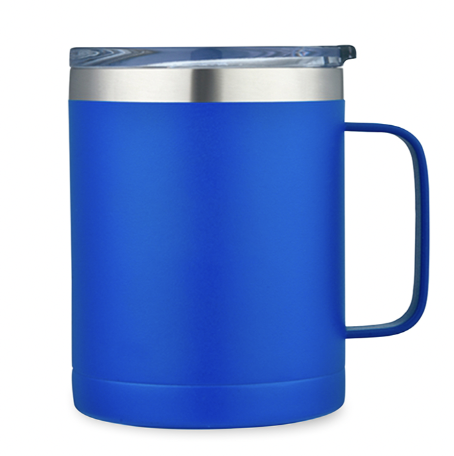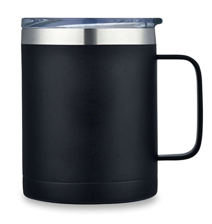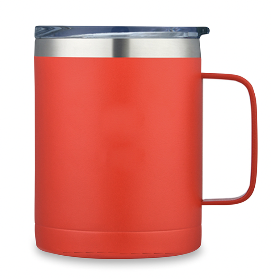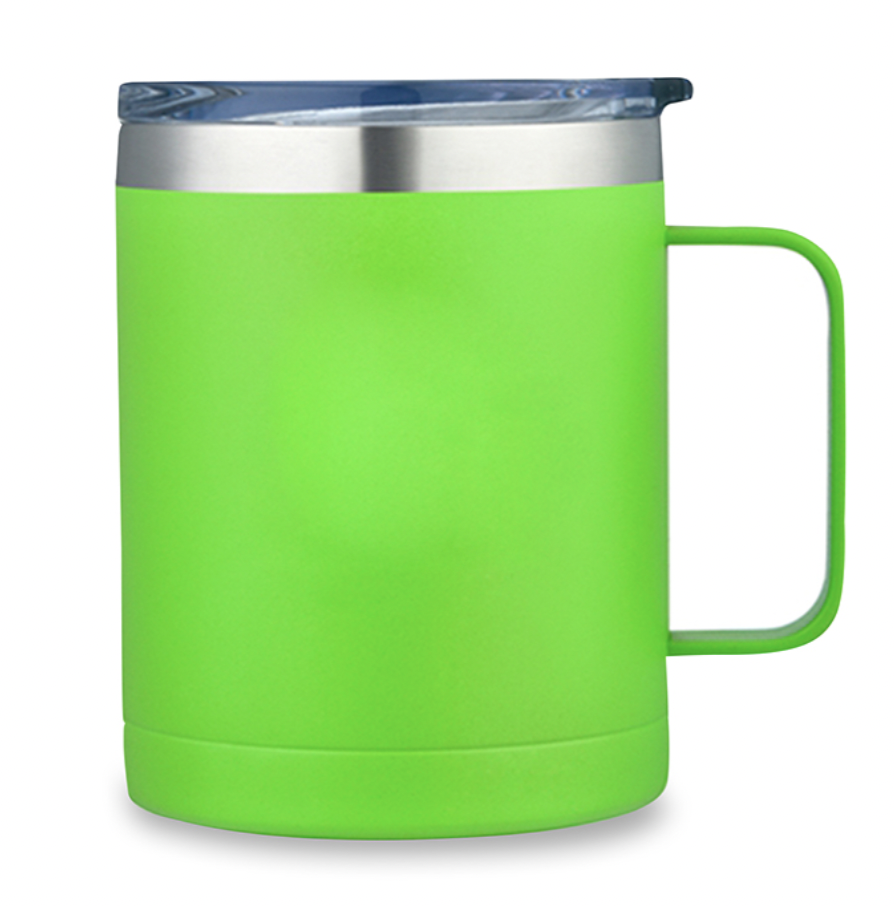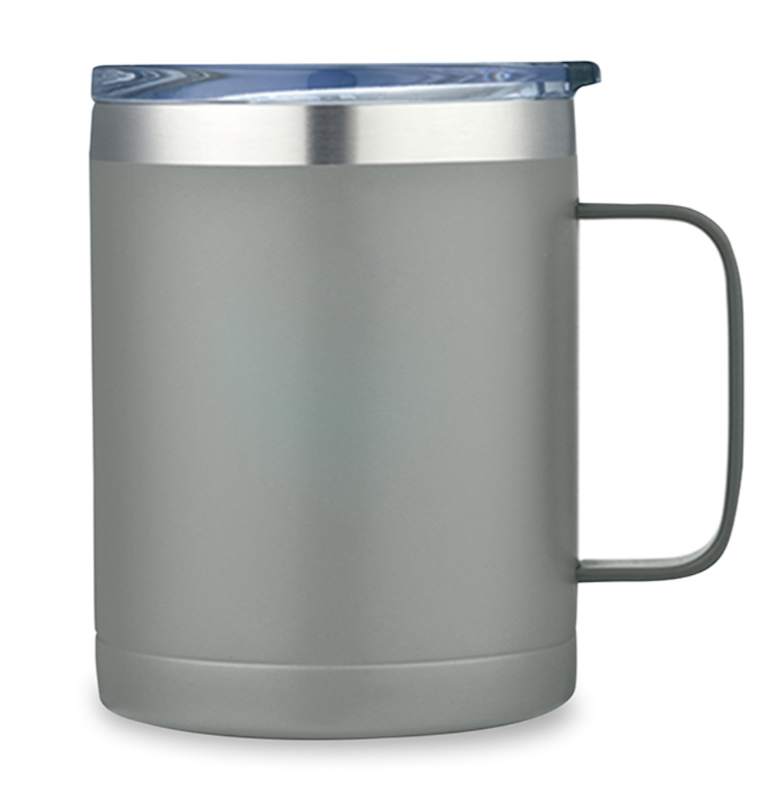 14oz. Stainless Steel Travel Mug. Powder coated body with AS open lid. 18/8 Stainless Steel liner with copper coated vacuum insulation. Keeps cold liquids cool up to 12 hours and hot liquids warm up to 8 hours.