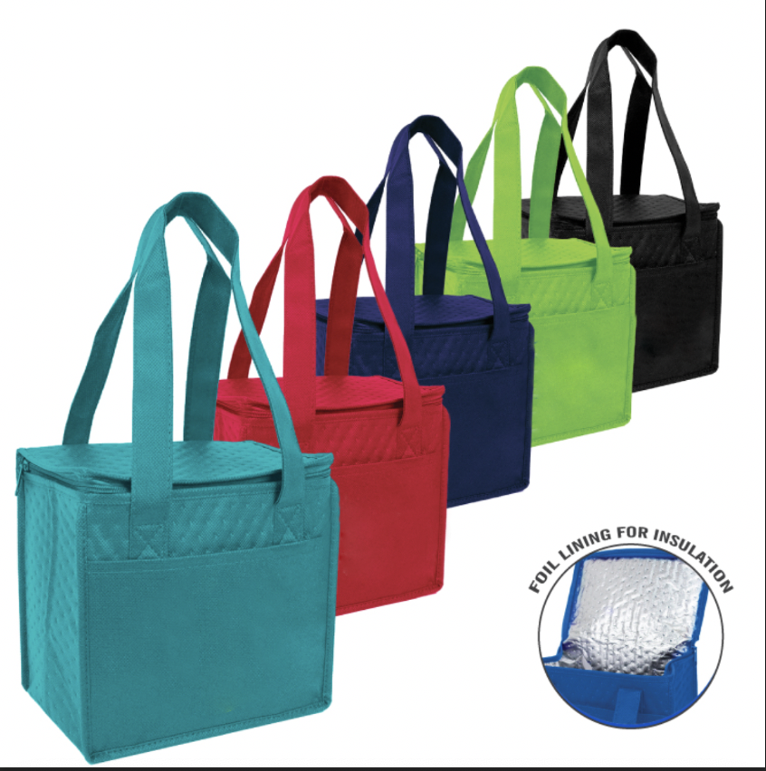 - Compact small hot/cold cooler tote with foil lining to keep food insulated