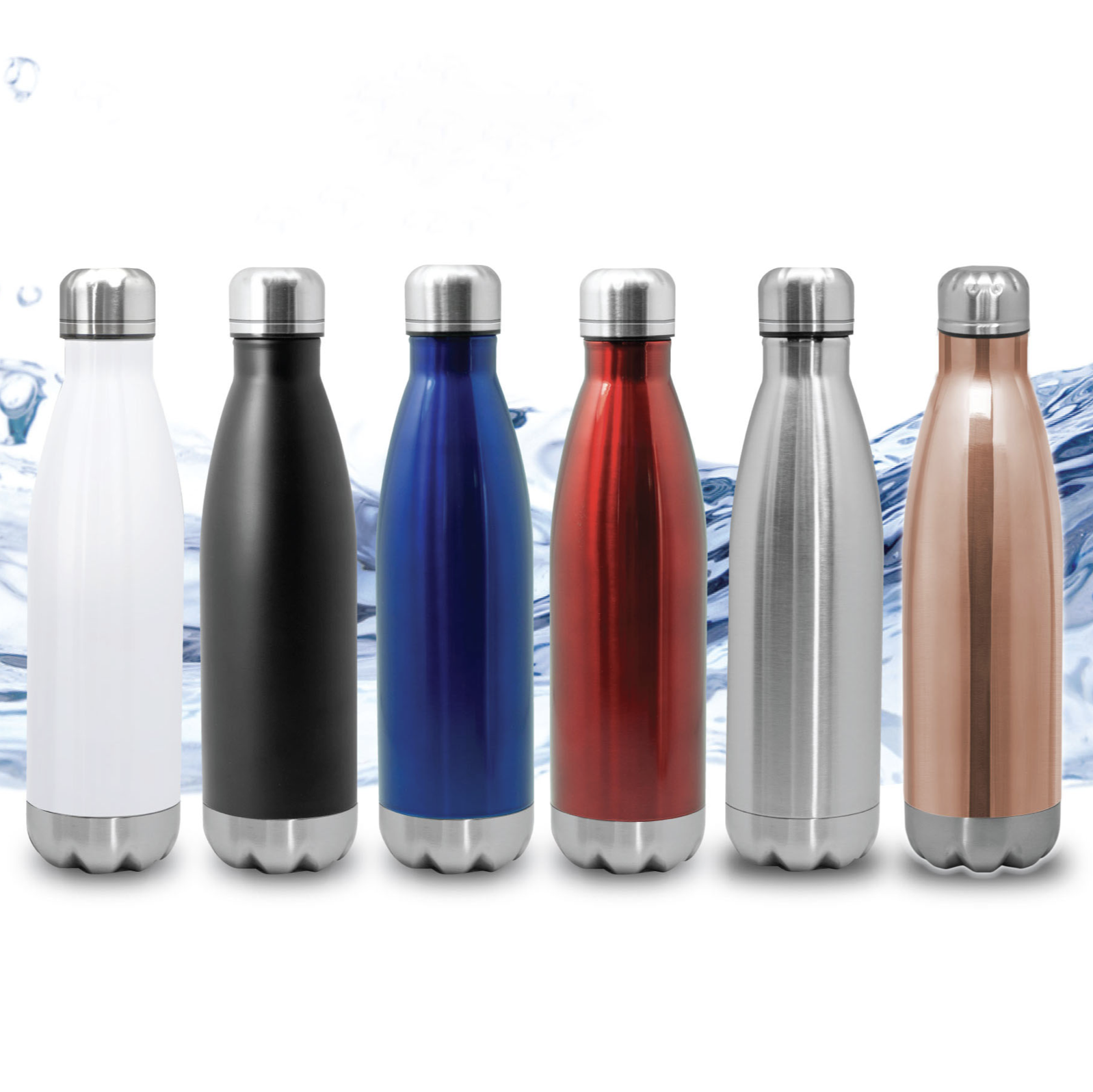 17 oz stainless steel sports vacuum bottle. Great for hot or cold liquids. Double wall stainless steel construction. Screw on/off lid. Reusable. Odor free. BPA free and Eco-friendly. Available Colors: White, Blue, Black, Silver, Red, Cooper