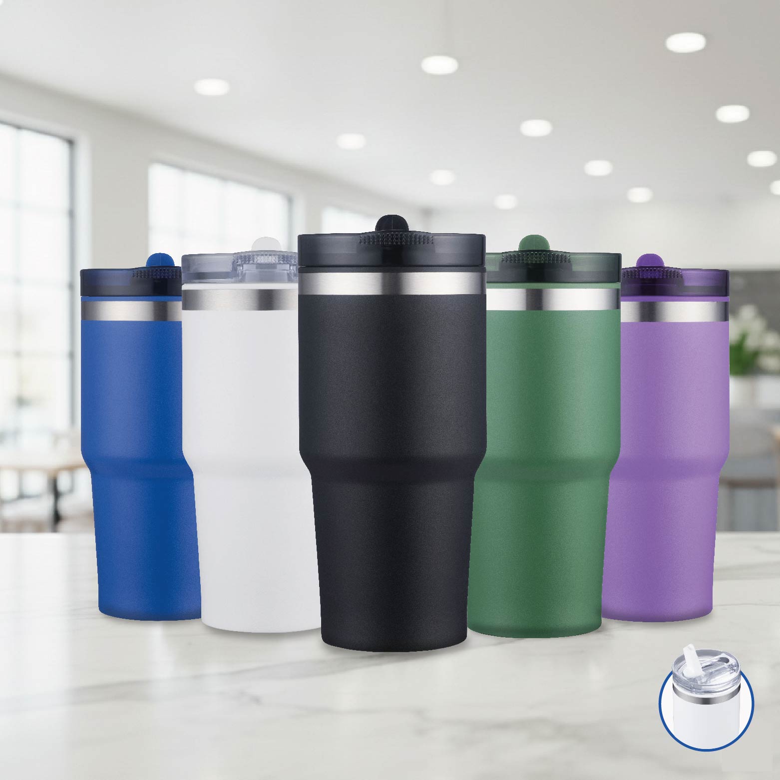 - Bulit-in straw lid
