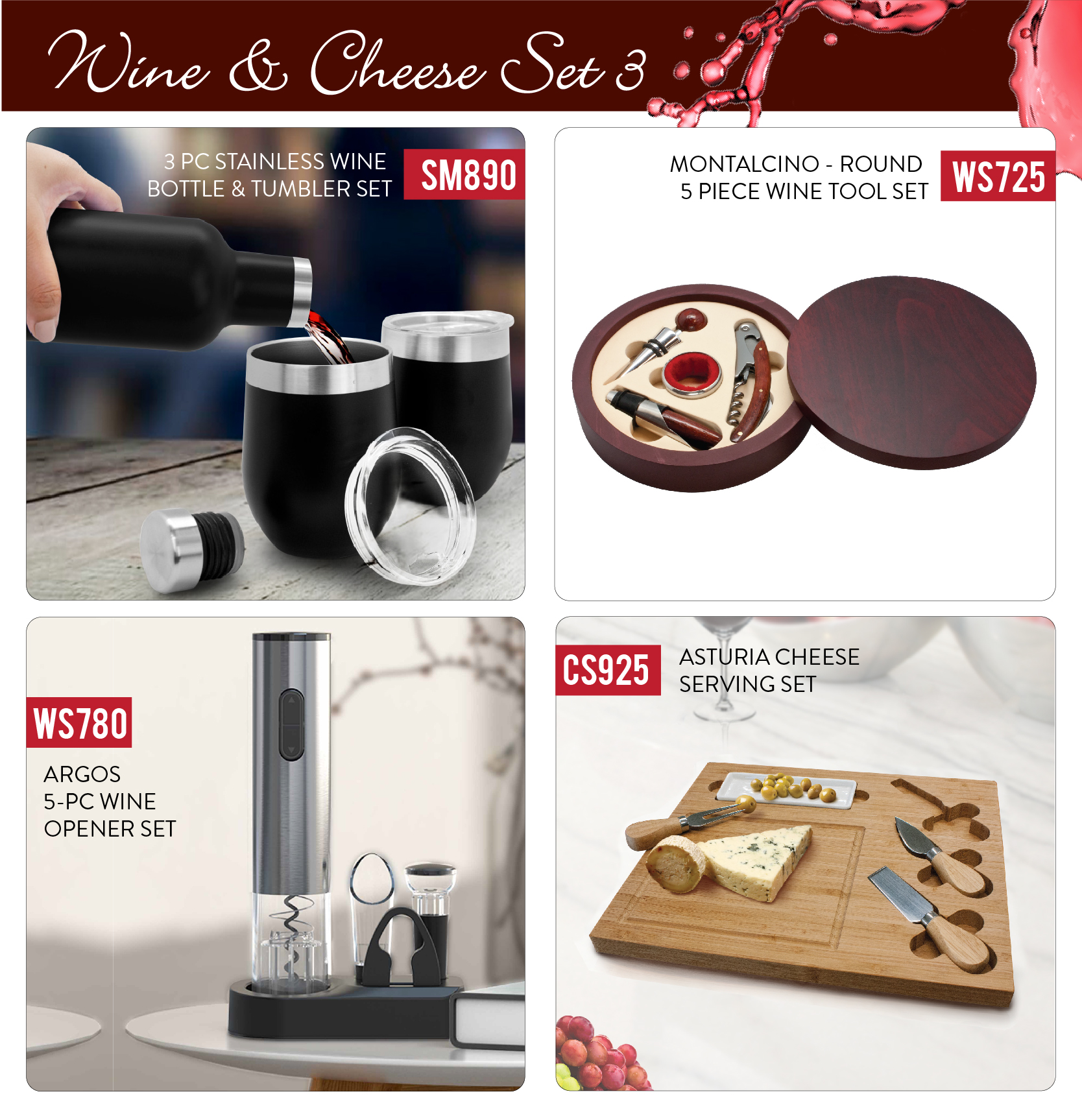 SM890 – 3 Pc Stainless Wine Bottle & Tumbler Set