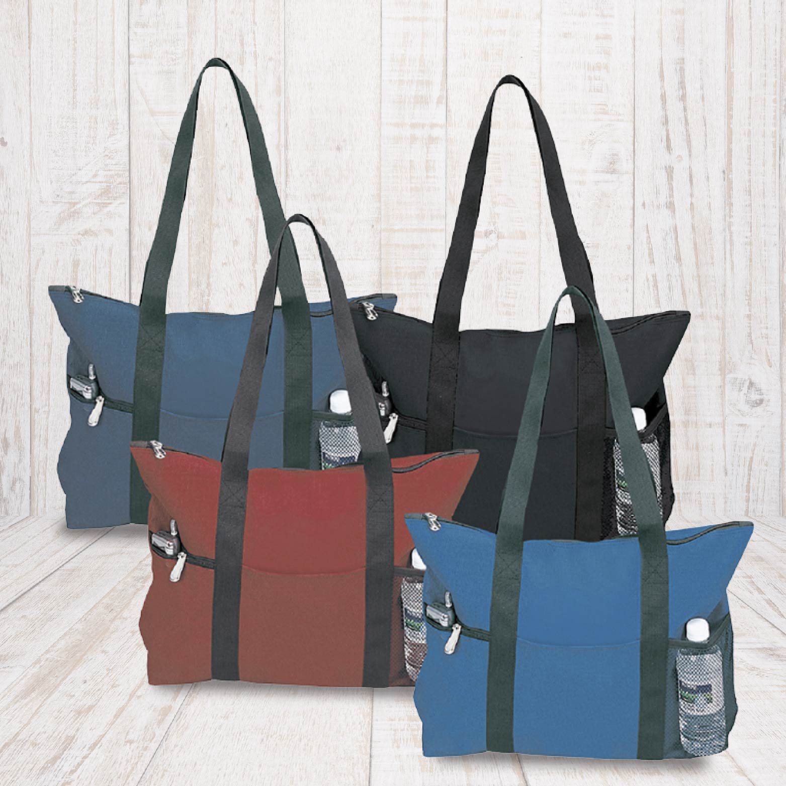 600D polyester ripstop with PVC backing. Features zippered front pocket, slip pocket, mesh pocket and metal key hook inside with 28″ strap.