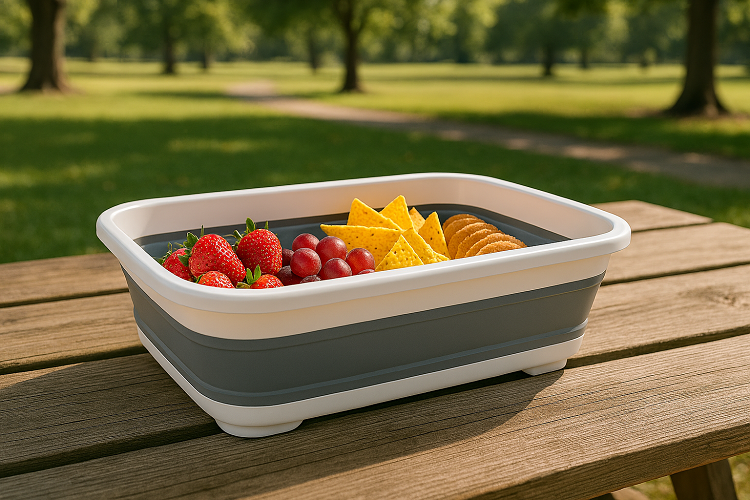 Crafted from durable TPR (Thermoplastic Rubber) and PP (Polypropylene), this collapsible tub combines functionality with space-saving design. Measuring 14.6″ x 10.75″, it expands to a height of 4-6″ and collapses down to just 2″, making it easy to store in tight spaces.