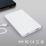 2500 mAh Portable Power Bank with a slim card shape which you can easily take in your pocket. Compatible with digital devices like mobile phones and tablets.